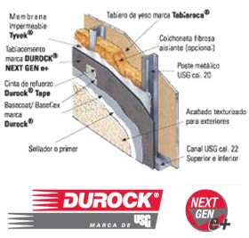 Tablero de fibra de vidrio que se utiliza en exterior, ya que resiste al moho, humedad, fuego, factores del clima. Se utiliza principalmente en fachadas.